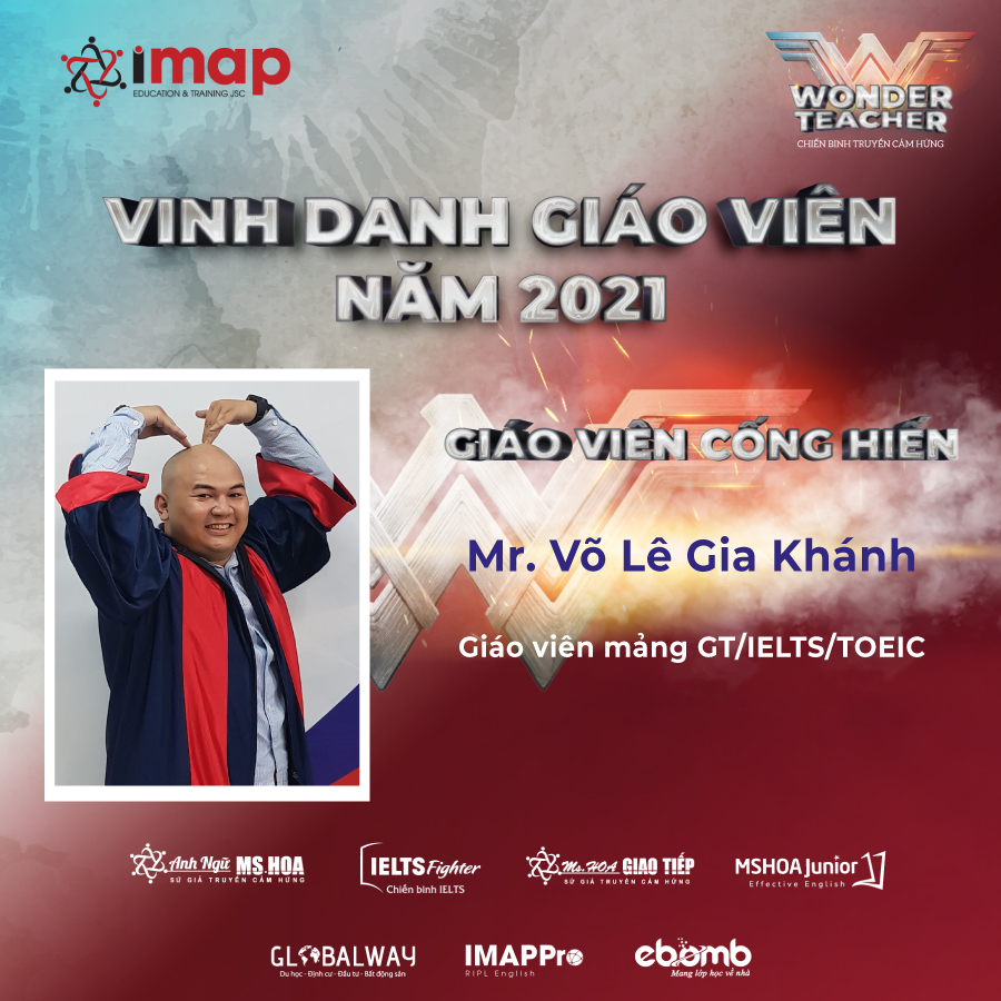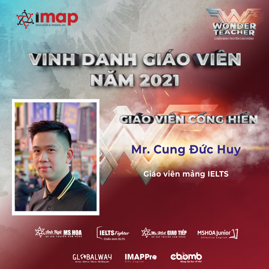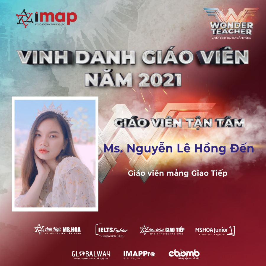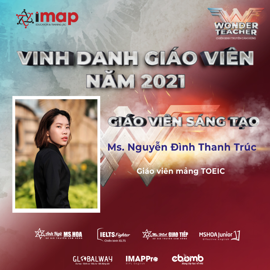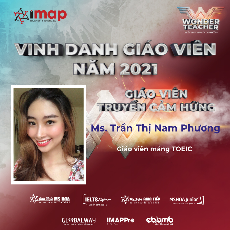 Xin chúc mừng các thầy cô đã xuất sắc thể hiện bản thân suốt quá trình giảng dạy và làm việc trong năm 2021, những Chiến binh truyền cảm hứng tiêu biểu của đội ngũ đào tạo. IMAP hi vọng rằng ngọn lửa nhiệt huyết, đam mê sẽ luôn cháy trong bản thân các bạn, là người truyền cảm hứng và sự yêu thích tiếng Anh tới cho nhiều thế hệ học viên hơn nữa.