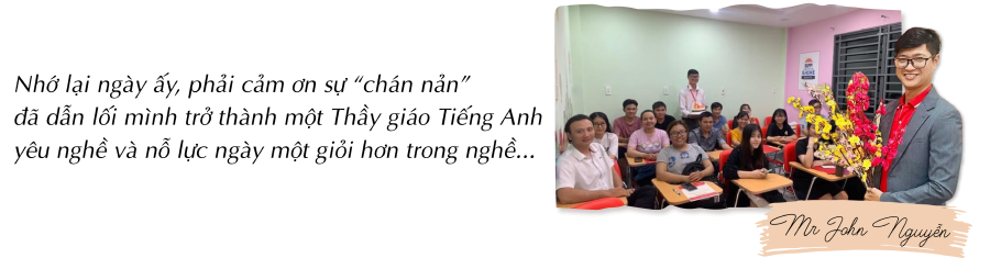 Học viên ở Anh Ngữ Ms Hoa thường hay gọi là Thầy John Nguyễn. Hơn 3 năm gắn bó đồng hành, không chỉ là 3 năm giảng dạy mà cũng chính là 3 năm trau dồi mỗi ngày để Mr John Nguyễn trở thành giáo viên đã xuất sắc được vinh danh với giải thưởng "Sứ giả tâm huyết" tại THE INSPIRER - Giáo viên dạy giỏi năm 2021 - khu vực Miền Nam.