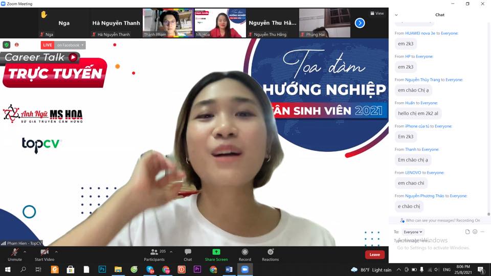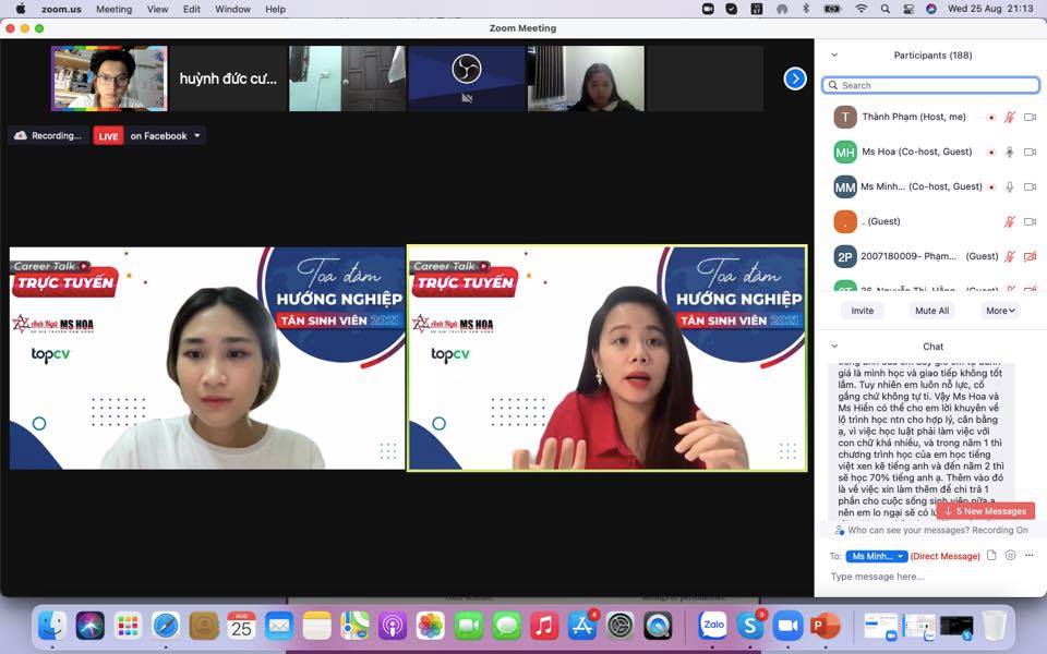 Toạ đàm trực tuyến "Hướng nghiệp - Tân sinh viên 2021" do thương hiệu Anh ngữ Ms Hoa phối hợp với nền tảng công nghệ tuyển dụng TopCV tổ chức đã mang đến rất nhiều lời khuyên hữu ích cho các bạn trẻ, các bạn tân sinh viên khi chuẩn bị bước vào cánh cửa đại học.