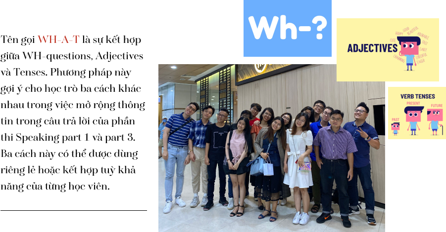 Phương pháp WH-A-T là một công cụ hữu hiệu giúp thầy Thạch hướng dẫn học viên chinh phục Speaking part 1 và part 3 dễ dàng hơn. “Trong quá trình giảng dạy, tôi đã giúp học viên trải nghiệm cách học này và ghi nhận sự tiến bộ khá rõ rệt từ các bạn. Do đó, tôi tin và mong rằng những giáo viên khác và học viên từ các lớp khác cũng sẽ cảm nhận được giá trị mà phương pháp học này mang lại” - thầy Thạch cho biết.